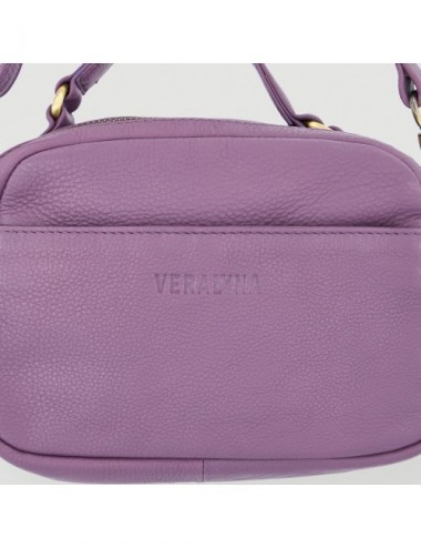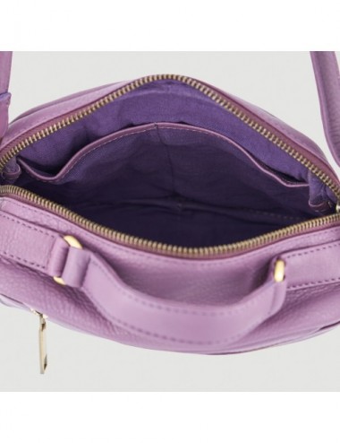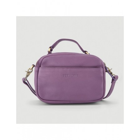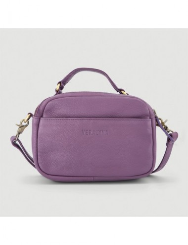 Bolso hecho a mano de piel modelo casty color pruna Veraluna. Hecho a mano en India por EMA. Comercio Justo.