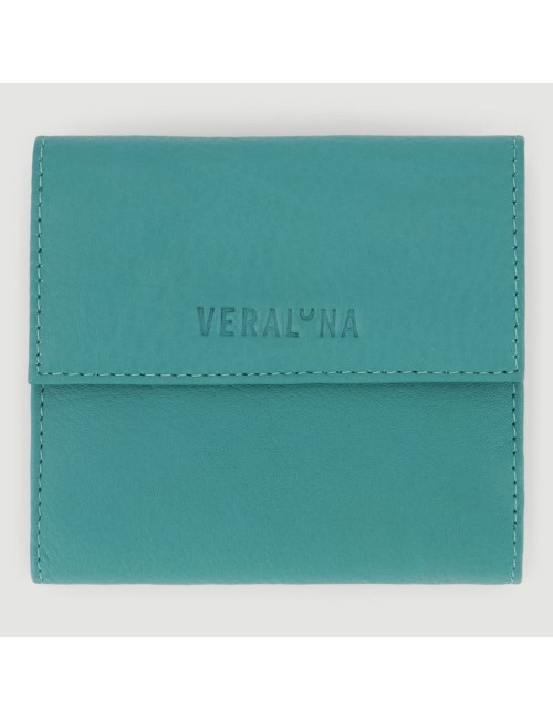 Monedero modelo Teru color verde y fucsia realizado de forma artesanal en piel natural. Un accesorio de moda 100% natural y hecho a mano.