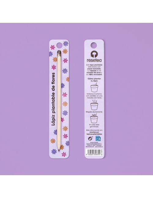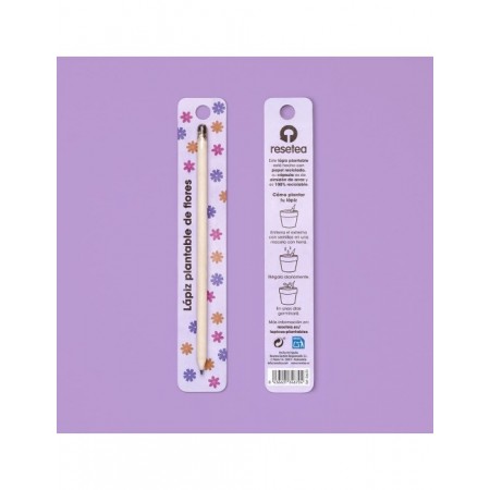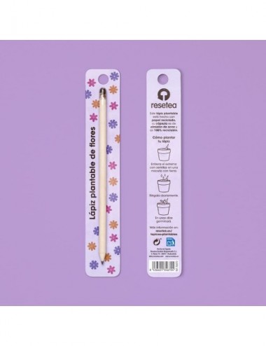 Lápiz plantable de papel reciclado, color morado con motivo floral.