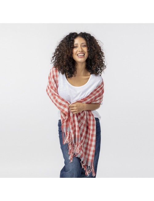 Fular coral de algodón orgánico y tintes naturales, suave y elegante.