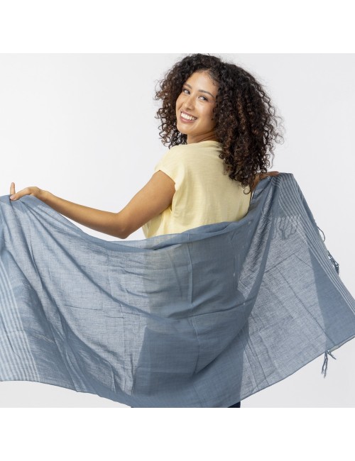 Fular orgánico modelo STITCHED. De algodón ecológico GOTS y tintes naturales. Un diseño actual pero que apuesta por los preceptos de la móda ética y la sostenibilidad.