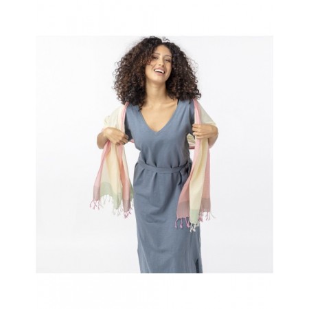 Fular hecho a mano modelo Block Baya. De Viscosa y tintes naturales. Un accesorio de moda sostenible con un diseño actual.