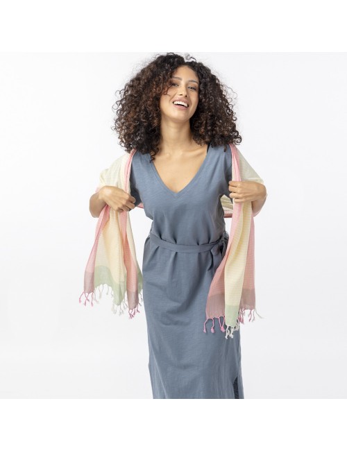 Fular artesanal de algodón orgánico. Estilo vibrante en este fular amarillo y rosa.