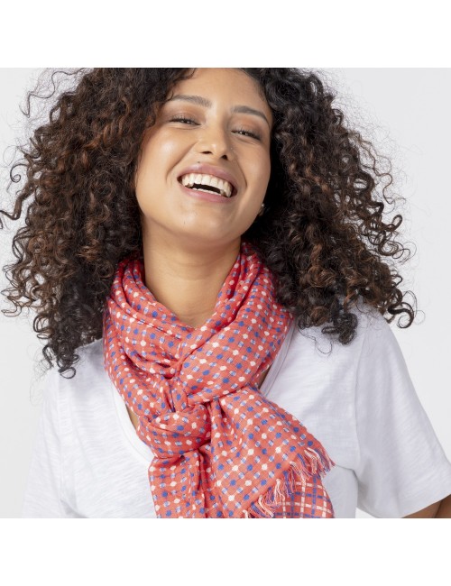 Fular orgánico modelo SUMI. De algodón ecológico GOTS y tintes naturales. Un diseño actual pero que apuesta por los preceptos de la móda ética y la sostenibilidad.