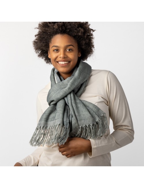 Fular hecho a mano modelo terra azafrán. De algodón orgánicoy tintes naturales. Un accesorio de moda sostenible con un diseño actual.