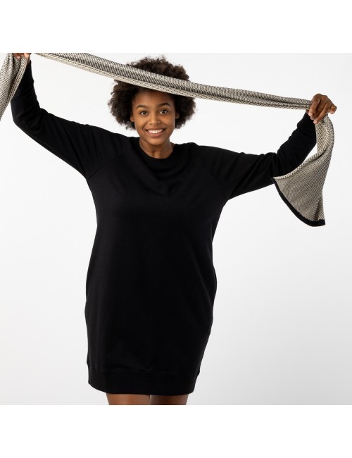 Fular hecho a mano de algodón orgánico y tintes naturales. Un accesorio de moda sostenible con un diseño actual.