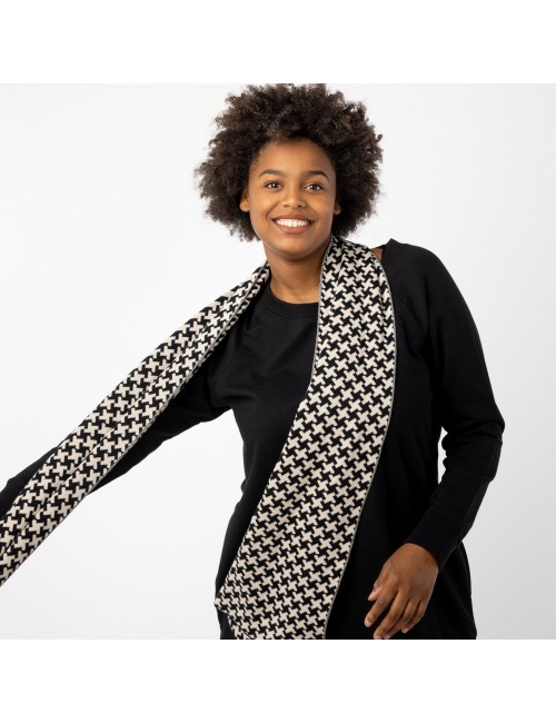 Fular orgánico modelo STITCHED. De algodón ecológico GOTS y tintes naturales. Un diseño actual pero que apuesta por los preceptos de la móda ética y la sostenibilidad.