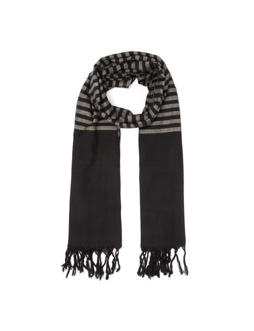 Bufanda hecha a mano modelo On Crudo Teka. De algodón orgánico y tintes naturales. Un accesorio de moda sostenible con un diseño actual.