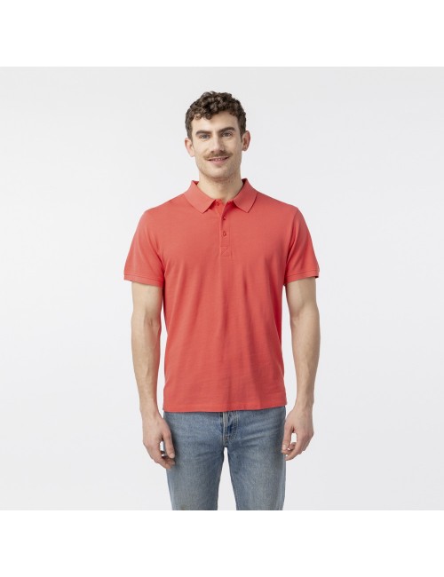 Polo de algodón ecológico para hombre en color coral, estilo casual y elegante.