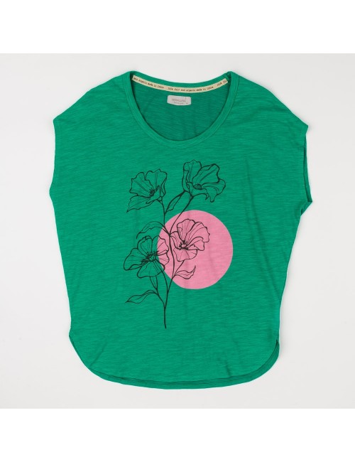 MCamiseta ecológica para mujer de comercio justo. Camiseta de moda sostenible de algodón orgánico GOTS y tintes naturales.