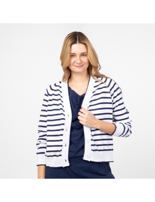 Cardigan para mujer de algodón orgánico GOTS y tintes naturales. Moda sostenible y de comercio justo, ropa cómoda de algodón ecológico.