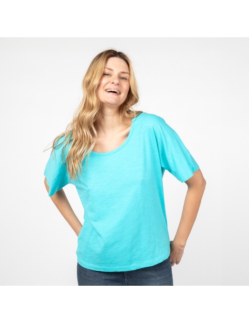 Camiseta de comercio justo para mujer. Camiseta de algodón ecológico GOTS y tintes naturales.