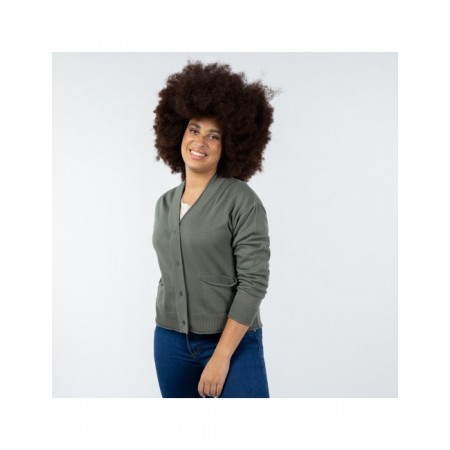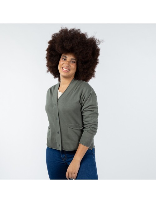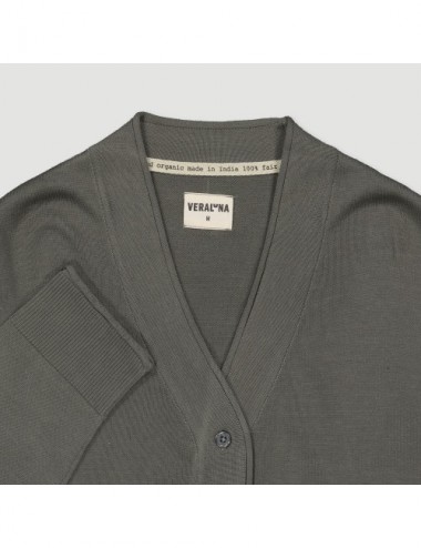 Cardigan ecológico de comercio justo. Cargidan de moda sostenible de algodón orgánico GOTS y tintes naturales.