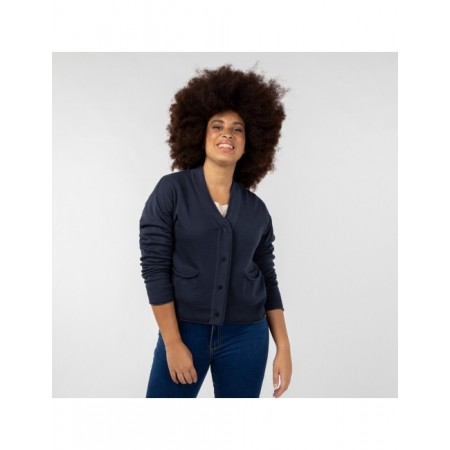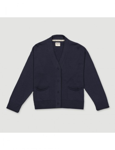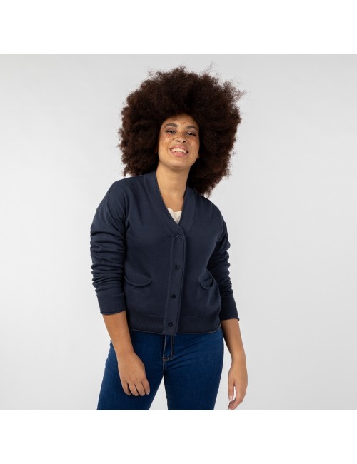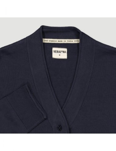 Cardigan ecológico de comercio justo. Cargidan de moda sostenible de algodón orgánico GOTS y tintes naturales.