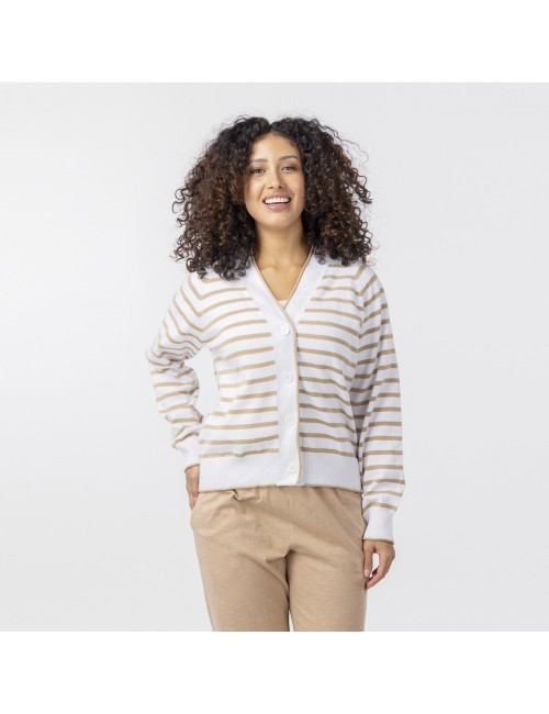 Cardigan para mujer de algodón orgánico GOTS y tintes naturales. Moda sostenible y de comercio justo, ropa cómoda de algodón ecológico.