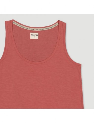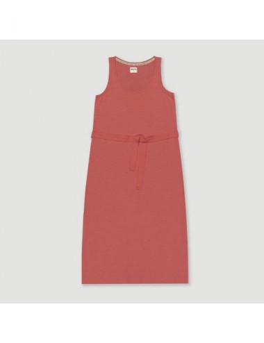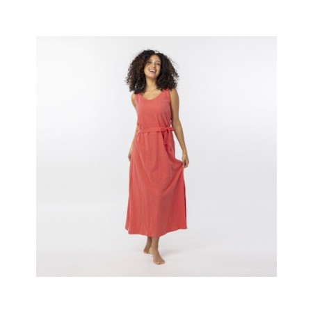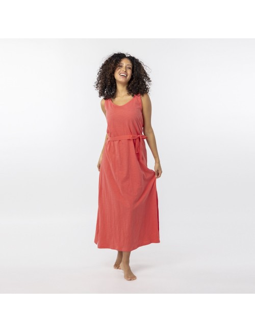 Vestido de algodón ecológico color coral, estilo fresco y natural para mujer.