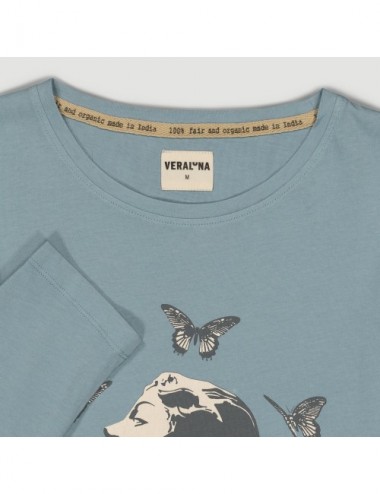 SCamiseta ecológica para mujer de comercio justo. Camiseta de moda sostenible de algodón orgánico GOTS y tintes naturales.